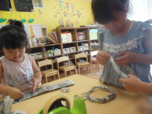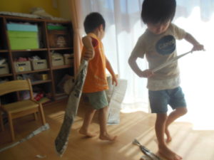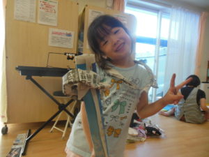 新聞紙で自分が作りたいものを作っています!