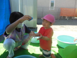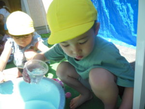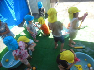 朝から水遊びを楽しみに登園してきてくれる子も多く、大満足の水遊びになったようです😊