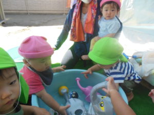 水遊び前のタンバリン組さん