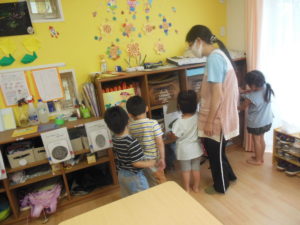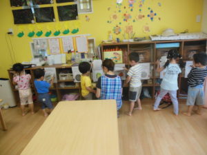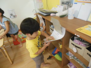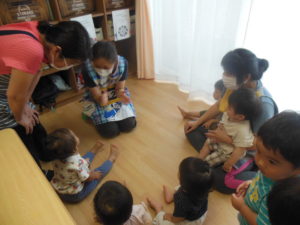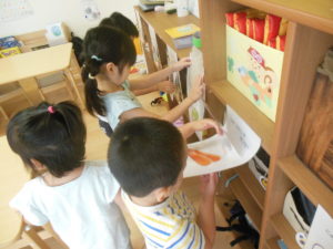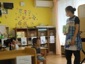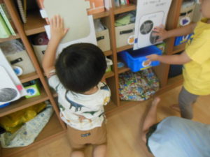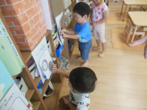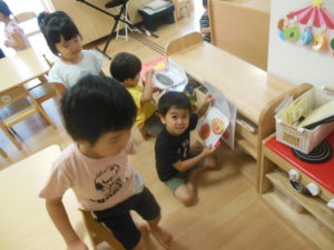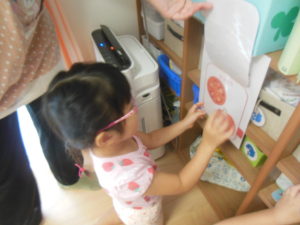 みんな次々にめくって野菜と果物のクイズを楽しんでいました。