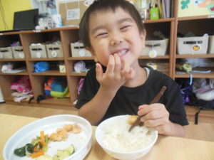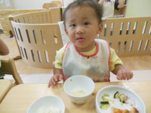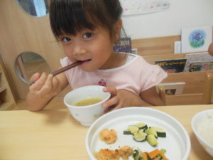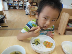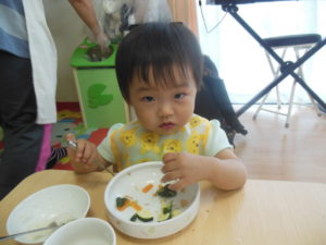 普段お野菜が苦手な子もズッキーニを自ら口に運ぶ姿が見られました。