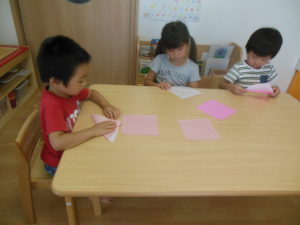 みんな真剣に折っていました。完成するのが楽しみですね😊