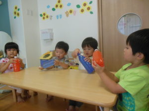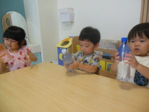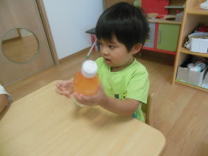 好きな色を選びペットボトルを振ると色が変わり子どもたちは大喜びでした。
