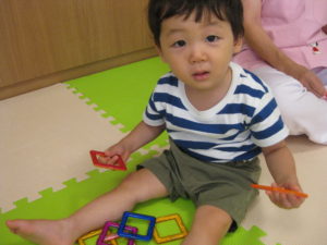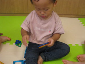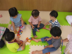 カスタネット組さんとスズ組さんはマグネット遊びをしました。