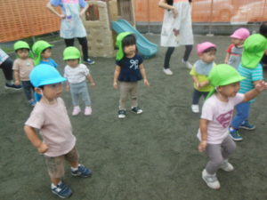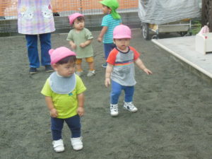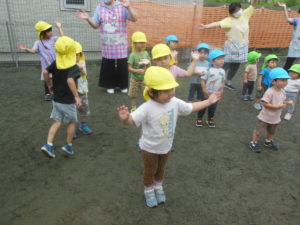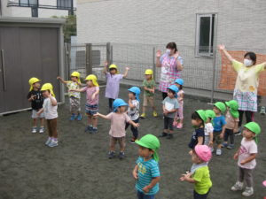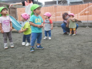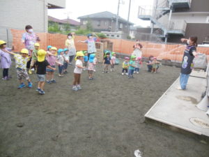 ピアノ組さんも園庭にきて全員集合!