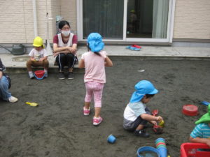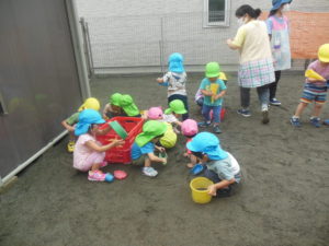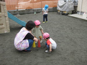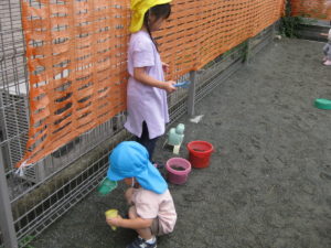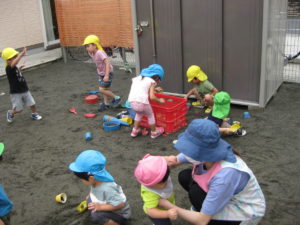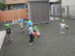その後は砂場玩具を出してみんなで遊びました♡