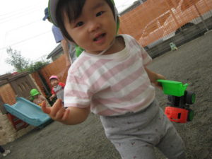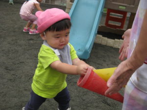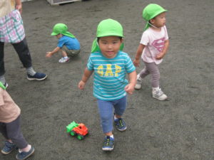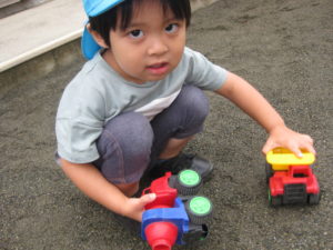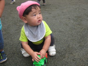 カスタネット・スズ・タンバリン組さんは園庭で車のオモチャで遊びました!