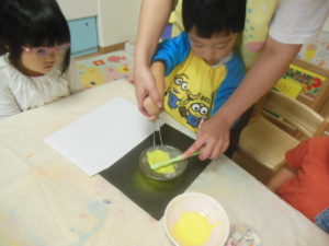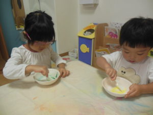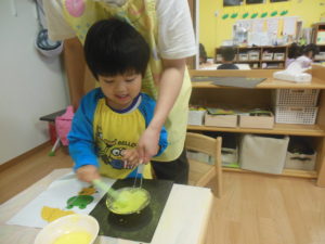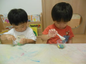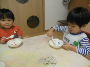 混ぜるとトロトロになり、興味を持って取り組んでいました。