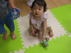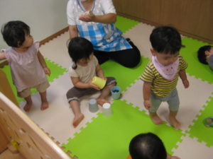 音が鳴る玩具が人気で手がいっぱい伸びていました。