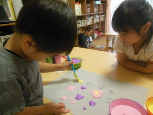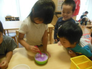 絵の具を混ぜて、キレイですね(^^♪
