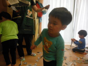 「このあそびおもしろいねぇ」と何度も言って、楽しんでいました。