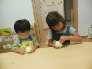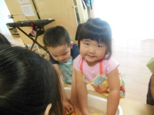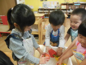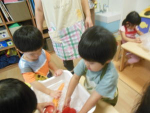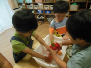 タンバリン・ピアノ組さんはまず野菜洗いをしました✨