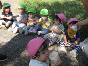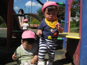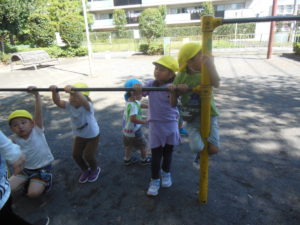 カスタネット組さんとピアノ組さんは中神住宅公園へ。