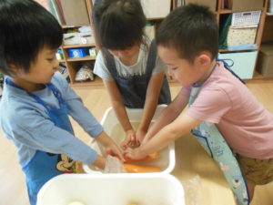 タンバリン・ピアノ組さんは火曜日なので野菜洗いの日!