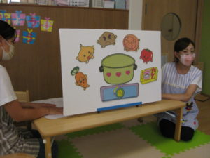 そして先生からの出し物は「カレーライスのうた」のパネルシアターです。