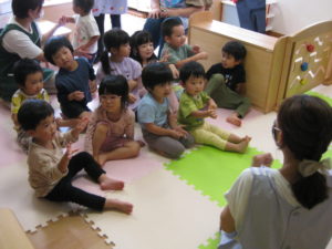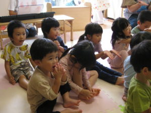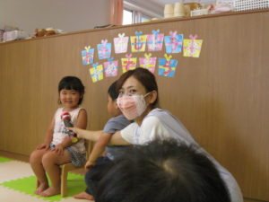 いつお誕生日会では歌にのせておともだちの名前を聞いています。