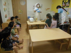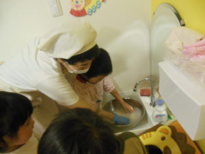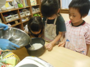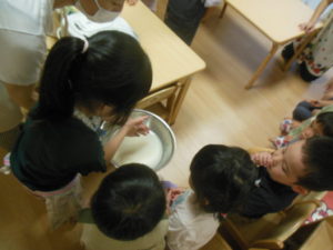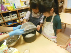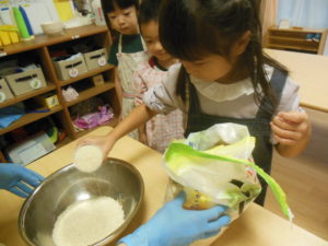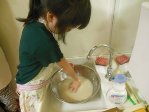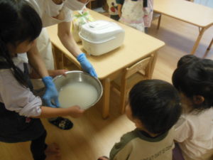お米研ぎはお友達が見守る中、代表の三名が行ってくれました。