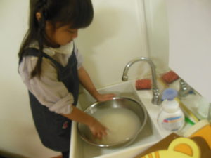 今日はタンバリン・ピアノ組さんでお米研ぎをしました。