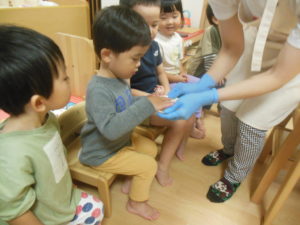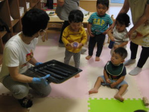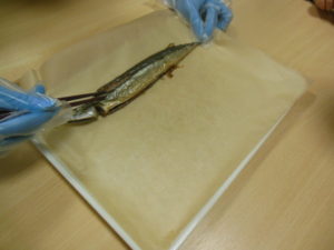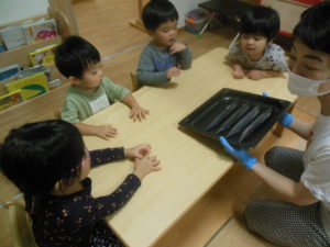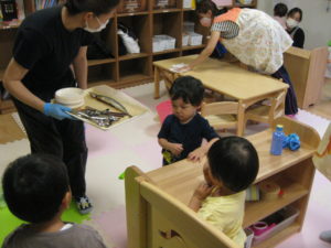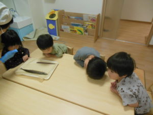 お魚独特の匂いは、良いにおいという子もいれば、ちょっと苦手・・・と顔を歪める子もいました。