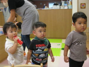 頭付きのお魚が怖くて少し離れたところから様子をうかがう子もいました。