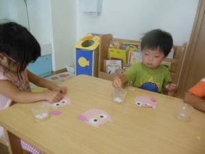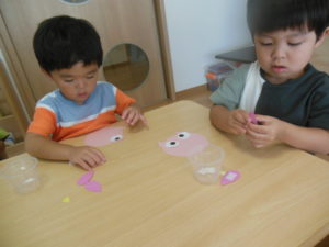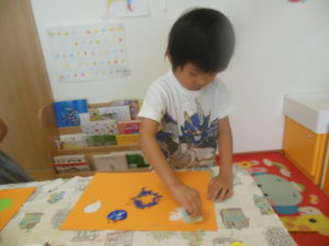 タンバリン組さんは、製作でシール貼りをしました。