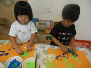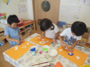 ピアノ組さんは、製作でスポンジスタンプをしました。