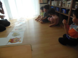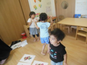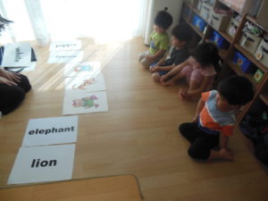 知っている動物の絵カードが出てくると、近くに行き見ていました♪
