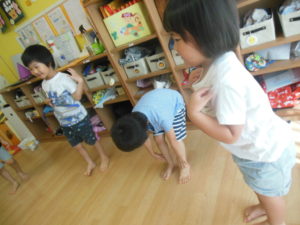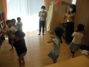 音楽に合わせて、手振り身振りをして表現しました。