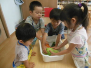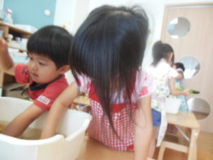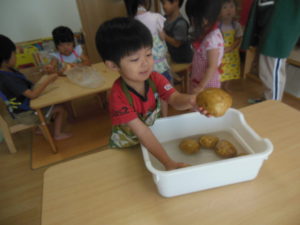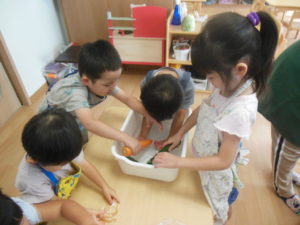 今日は野菜洗いの日ですね❣みんなで協力します(#^^#)