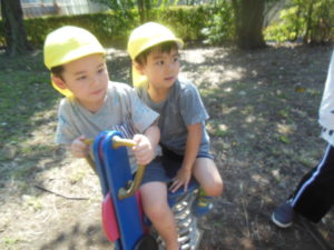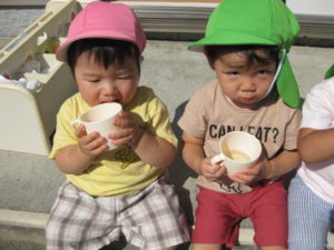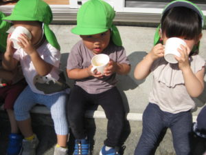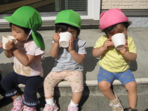 帰って来てまずは、水分補給をしてから園庭で遊びました😊みんな上手に飲めました😊