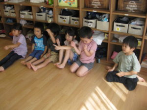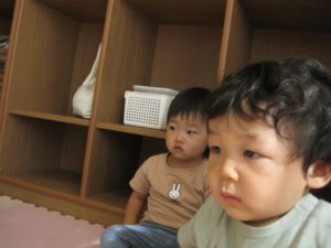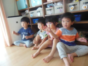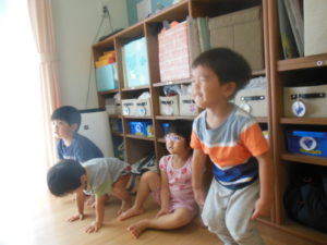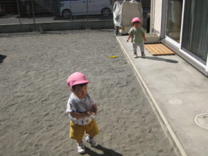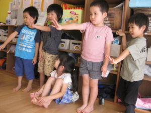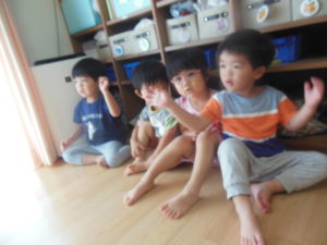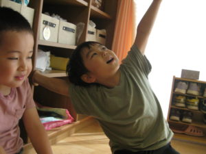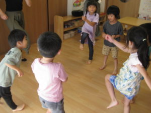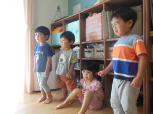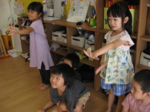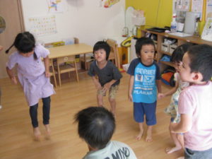 音楽に合わせてジャンプしたり歩いたりすると嬉しそうに先生の真似をしていました。