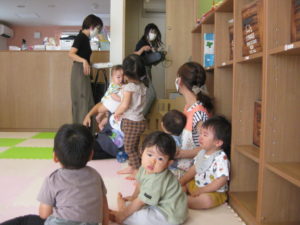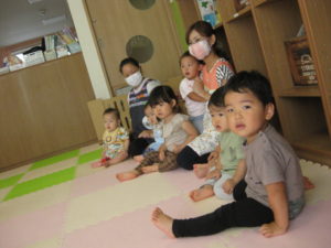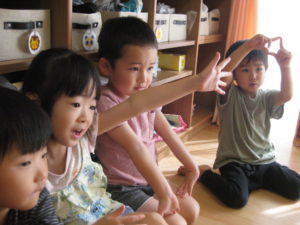 「ハローソング」や歌に合わせて上手に手遊びをしたり歌っています。
