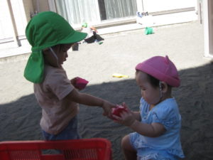 今日から新しくカスタネット組さんにお友だちが来ました。