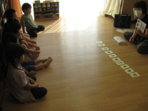 動物のカードが出て来たり、音楽に合わせてジャンプしたり歩きました。