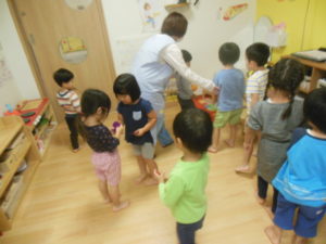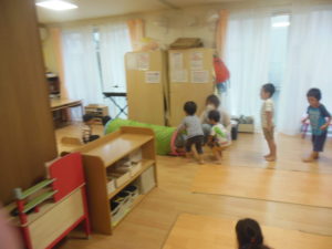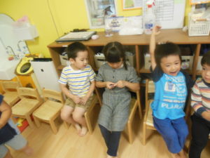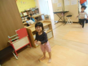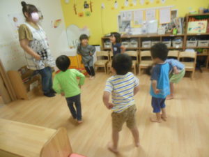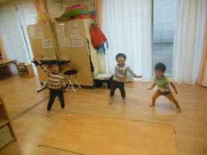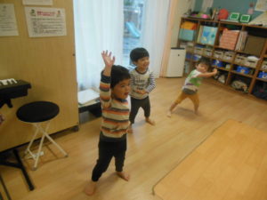 リズム体操の日でしたが、園庭では行えず各保育室で行いました🎵