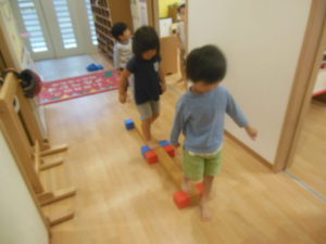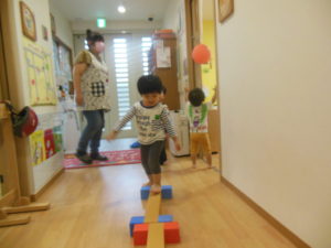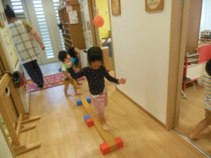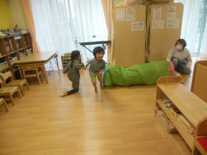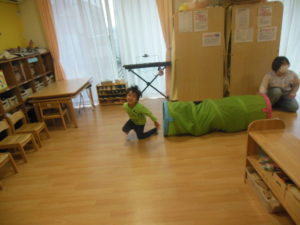 トンネルや平均台を使って、サーキット遊びをしました(^^)/
