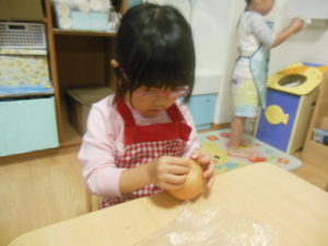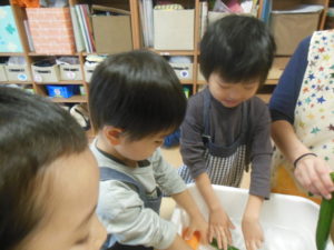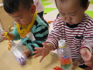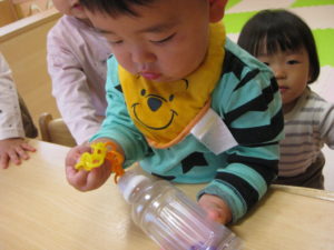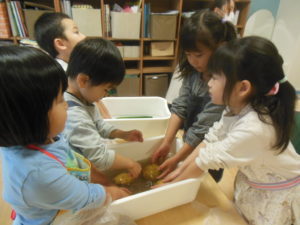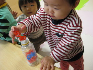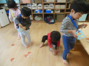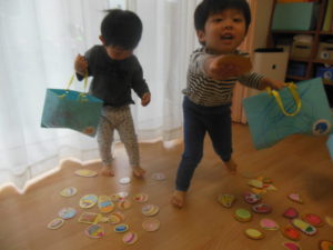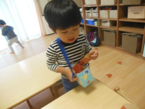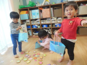 タンバリン組さんは、お買い物ごっことどんぐり拾いを。
