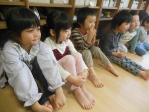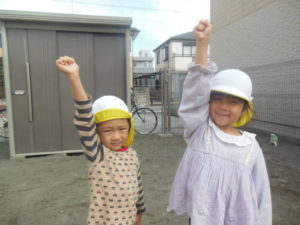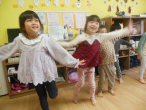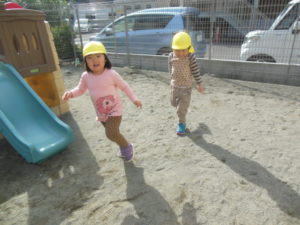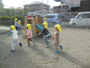 ピアノ組さんは、英語の前に園庭でドロケイをして遊びました。