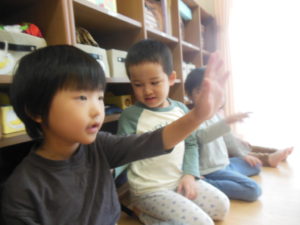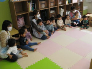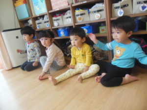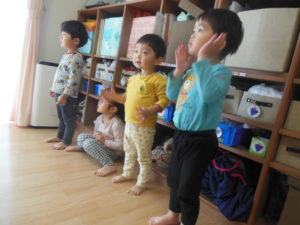 音楽が流れると、手を叩いたり体を揺らしたりして楽しみました。