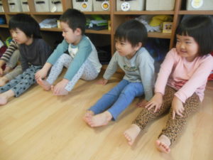 音楽が流れると、講師の先生の動きを良く見て動きます。