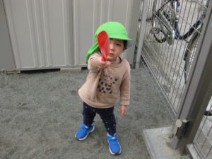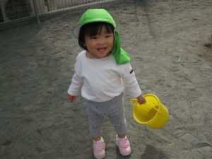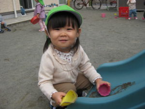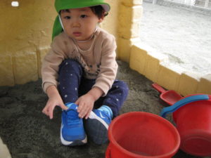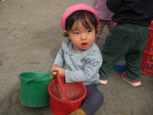 バケツに砂を入れて運んだり、スコップですくったりして遊びました。