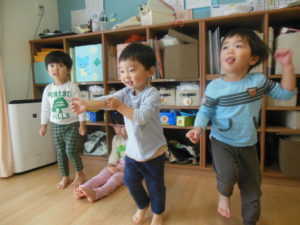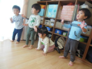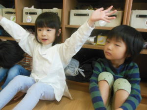 英語の曲に合わせて踊ったりする子もいて少しずつ慣れていますね☆