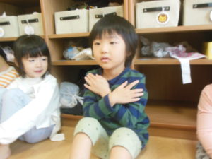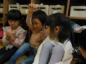 いつも英語の後は英語でやった歌をみんなで歌ったり、覚えた単語を言ったりていますよ!
