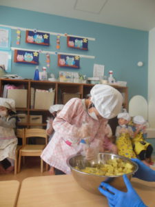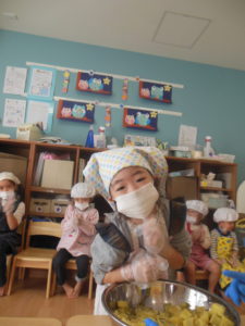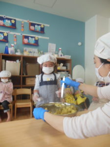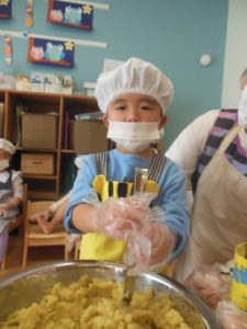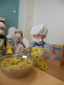 タンバリン・ピアノ組さんは、先月、お芋ほりをしたさつまいもで、スイートポテトづくりをしました🍠