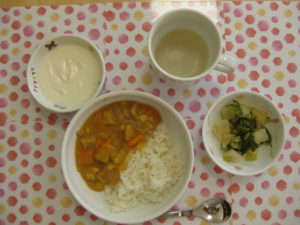 ツナと凍り豆腐のチーズカレー・かぶの和風サラダ・ヨーグルト