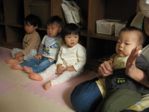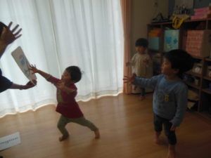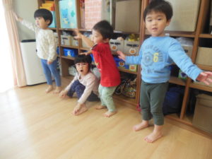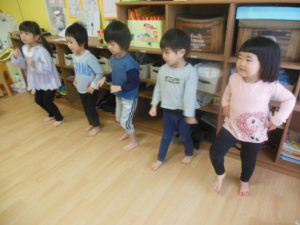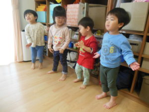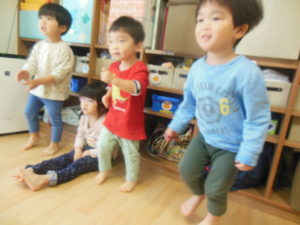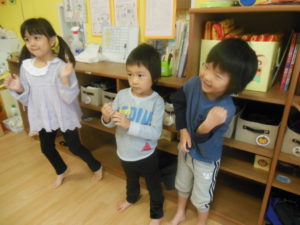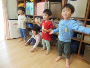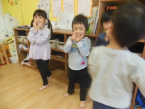 英語にだんだん慣れてきた様子で、英語の歌に身体を揺らしたり、