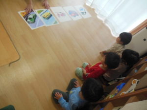 英語では乗り物のカードに興味津々です🚗