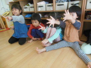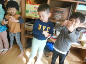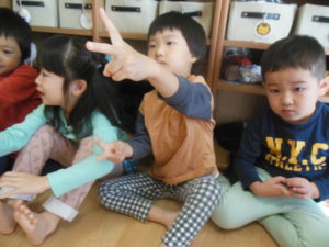 カスタネット・スズ組さんの英語の様子ですまだ慣れていないお友だちも、いますが今日は笑顔が見られましたよ😊