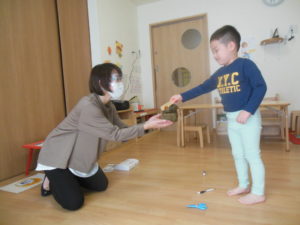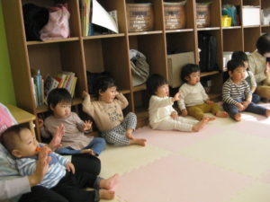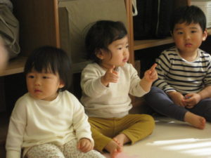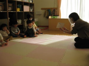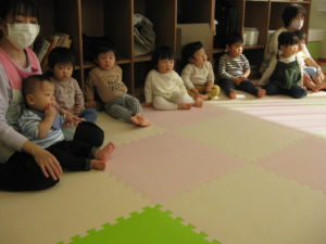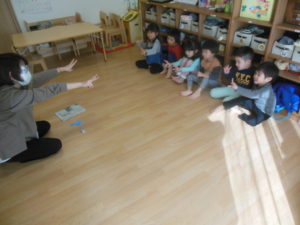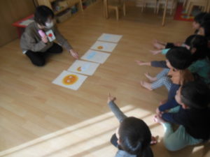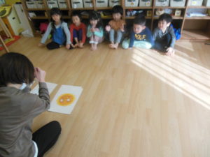 タンバリン、ピアノ組さんの英語の様子ですとても真剣に聞いて楽しんでいました!