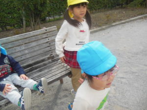 ベンチ周りの砂を集めて手で持ったり、かけっこをしたりして遊びました。